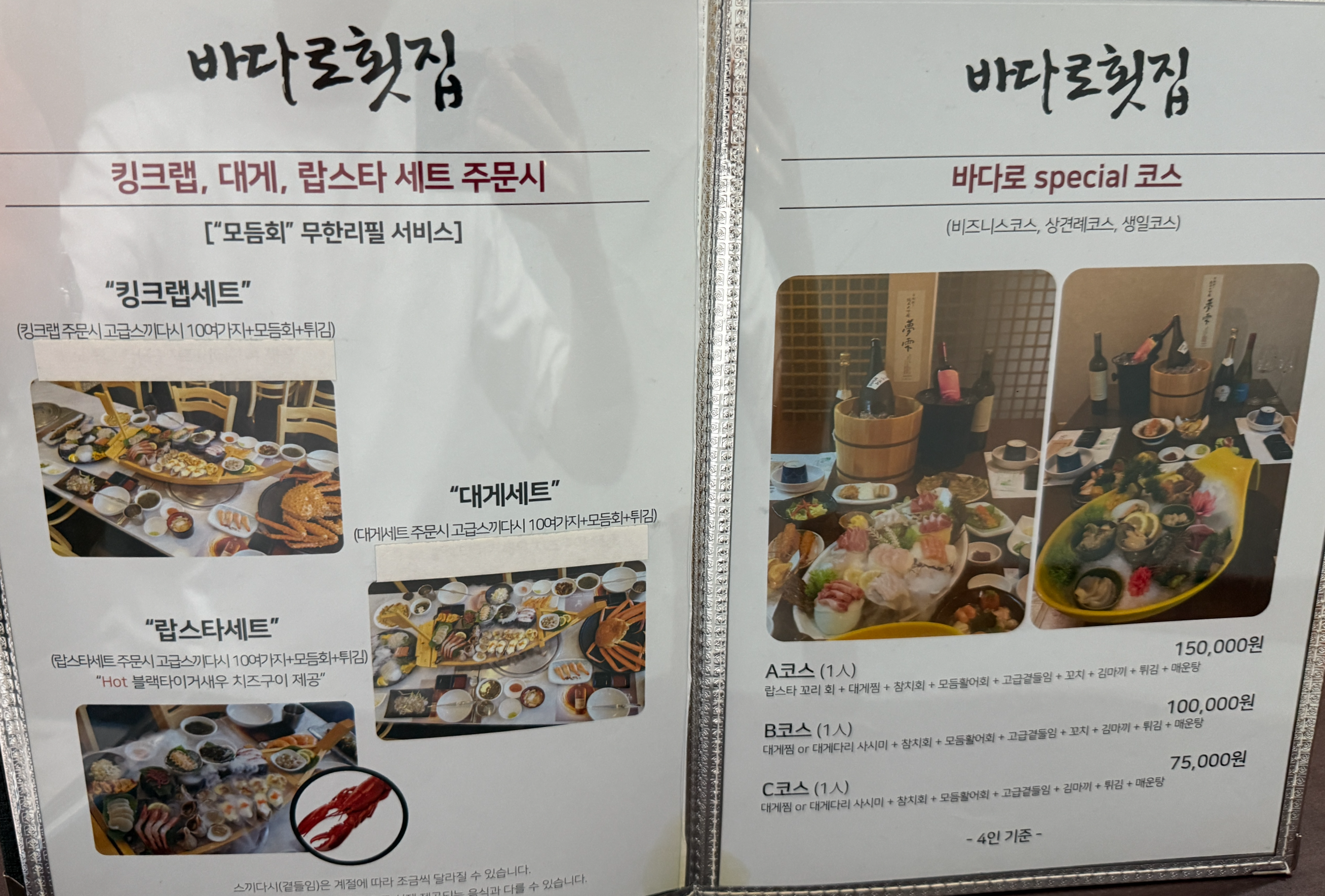 대게, 킹크랩, 랍스터를 주문하면