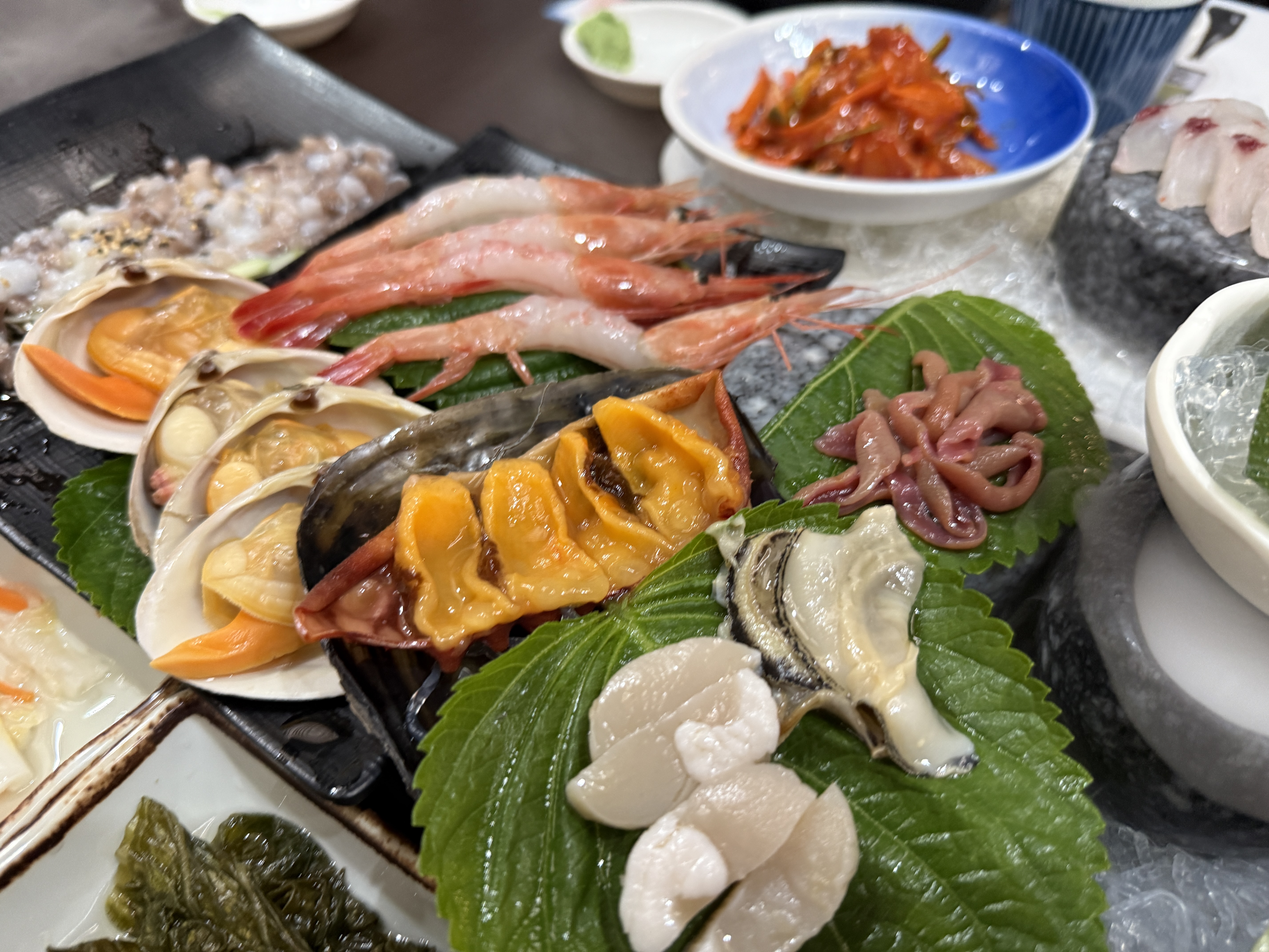 단새우회, 홍합, 가리비, 멍게,
