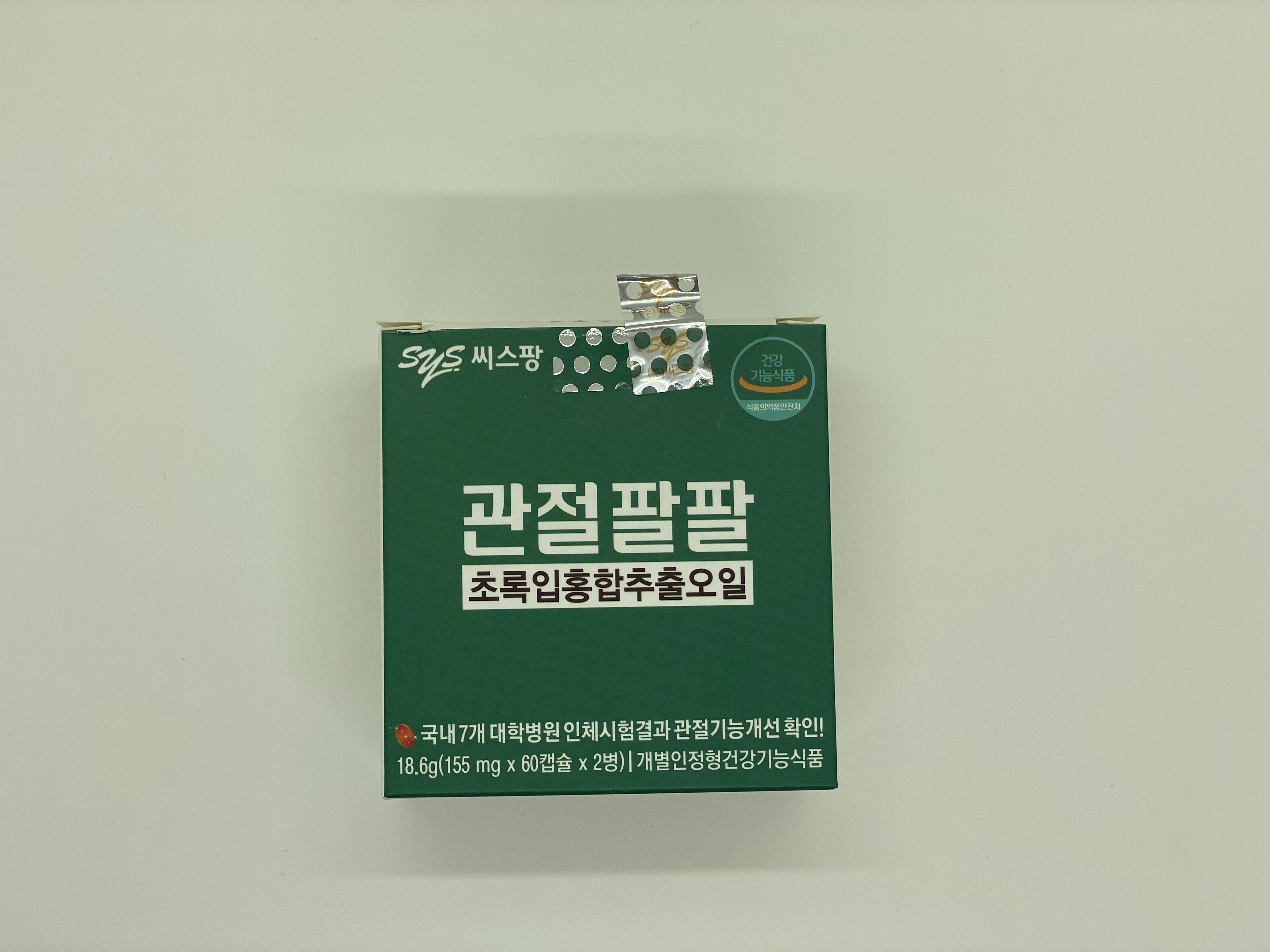 초록입홍합추출오일로 만든 무릎 건강 기능 식품 "관절팔팔"의 박스를 열어보았습니다.